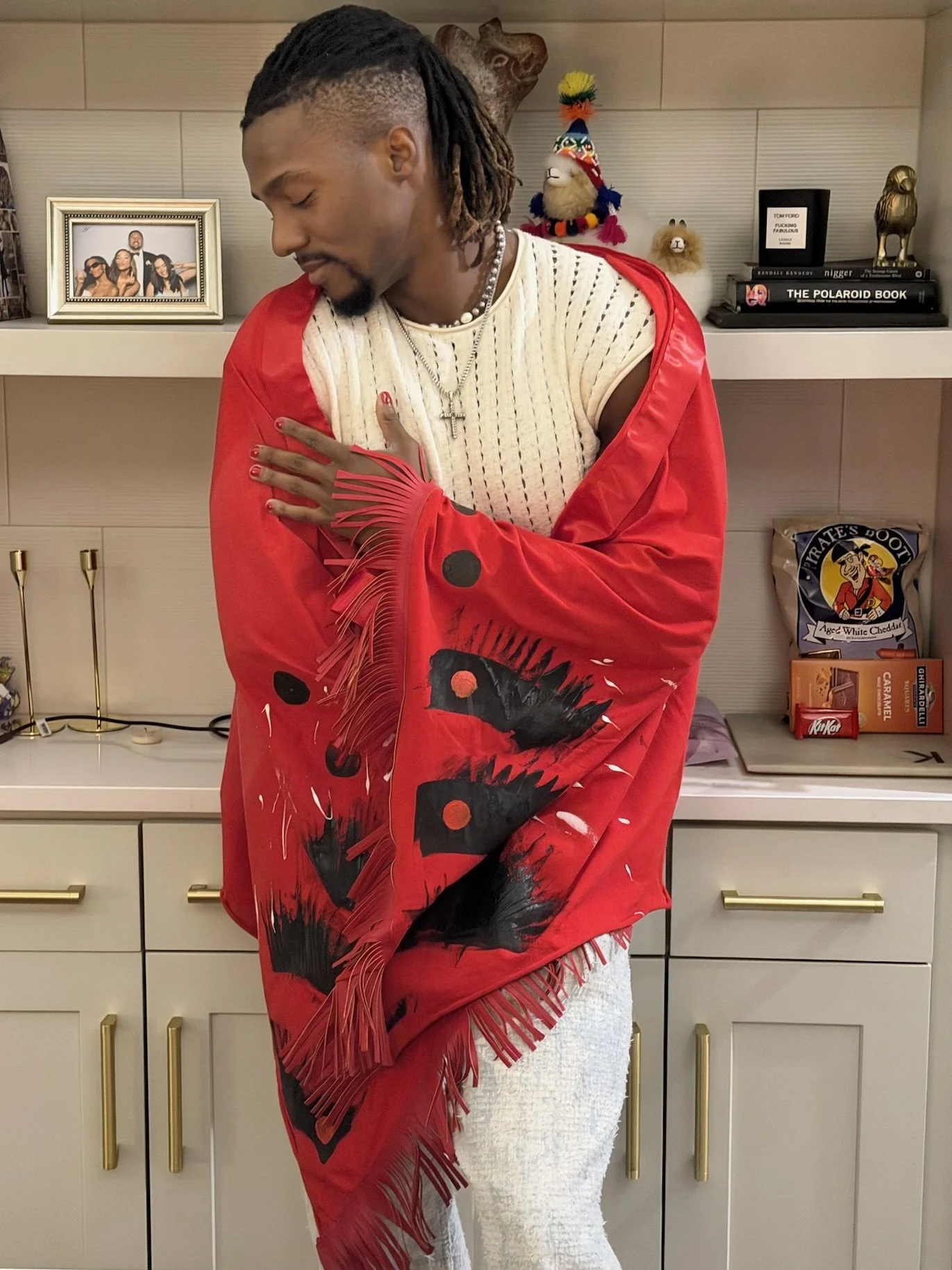 An original hand painted and individually crafted work of art, suitable for wear or exhibit.